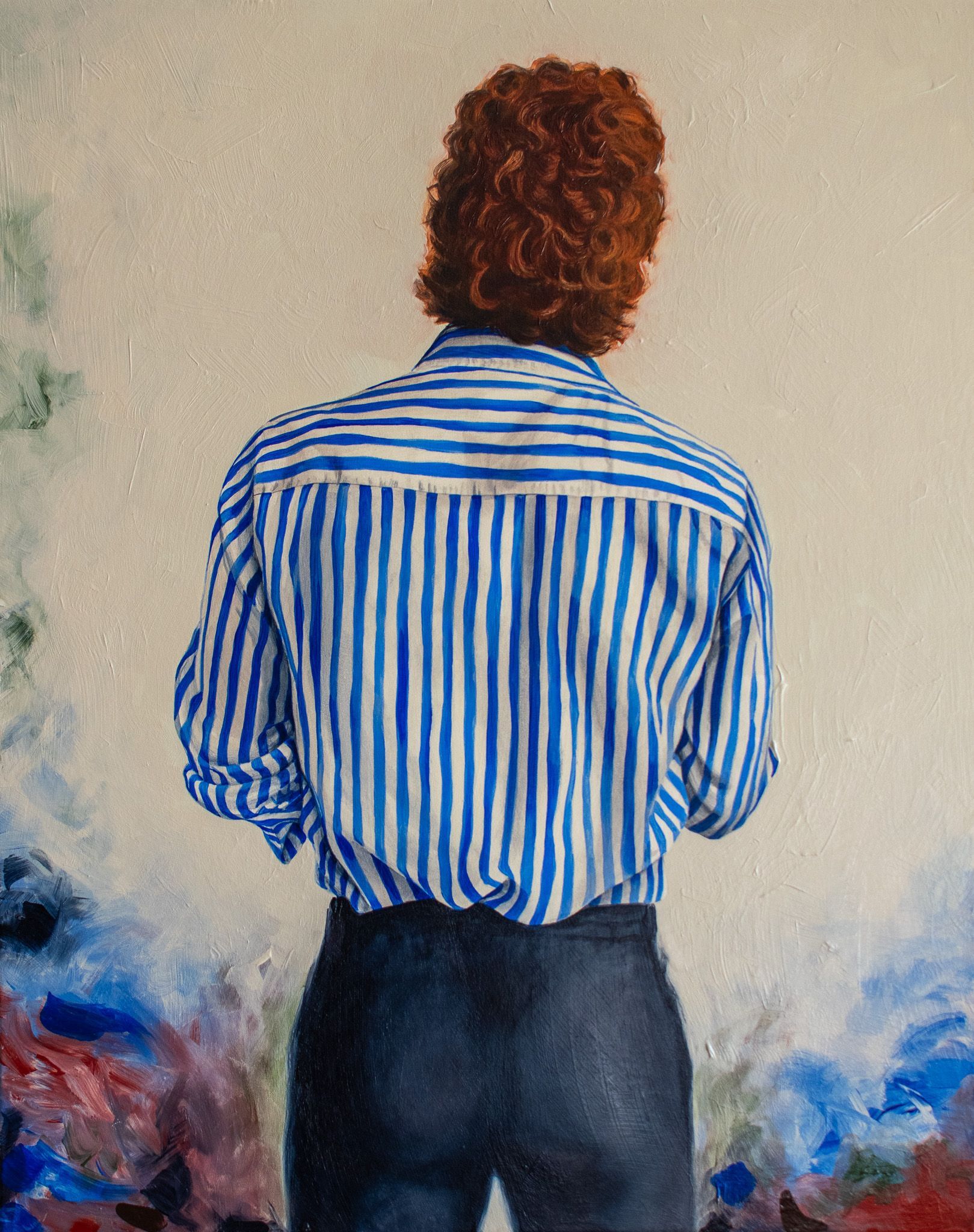 Thematisch setze ich mich in dieser Serie mit dem malerisch reproduzierbaren Körper, der zwischen Geheimnis und Trivialität, Fülle und Leere oszilliert. Ich setze mich mit Haltungen und Symbolen des Körpers auseinander, der sich in Kleidung versteckt.