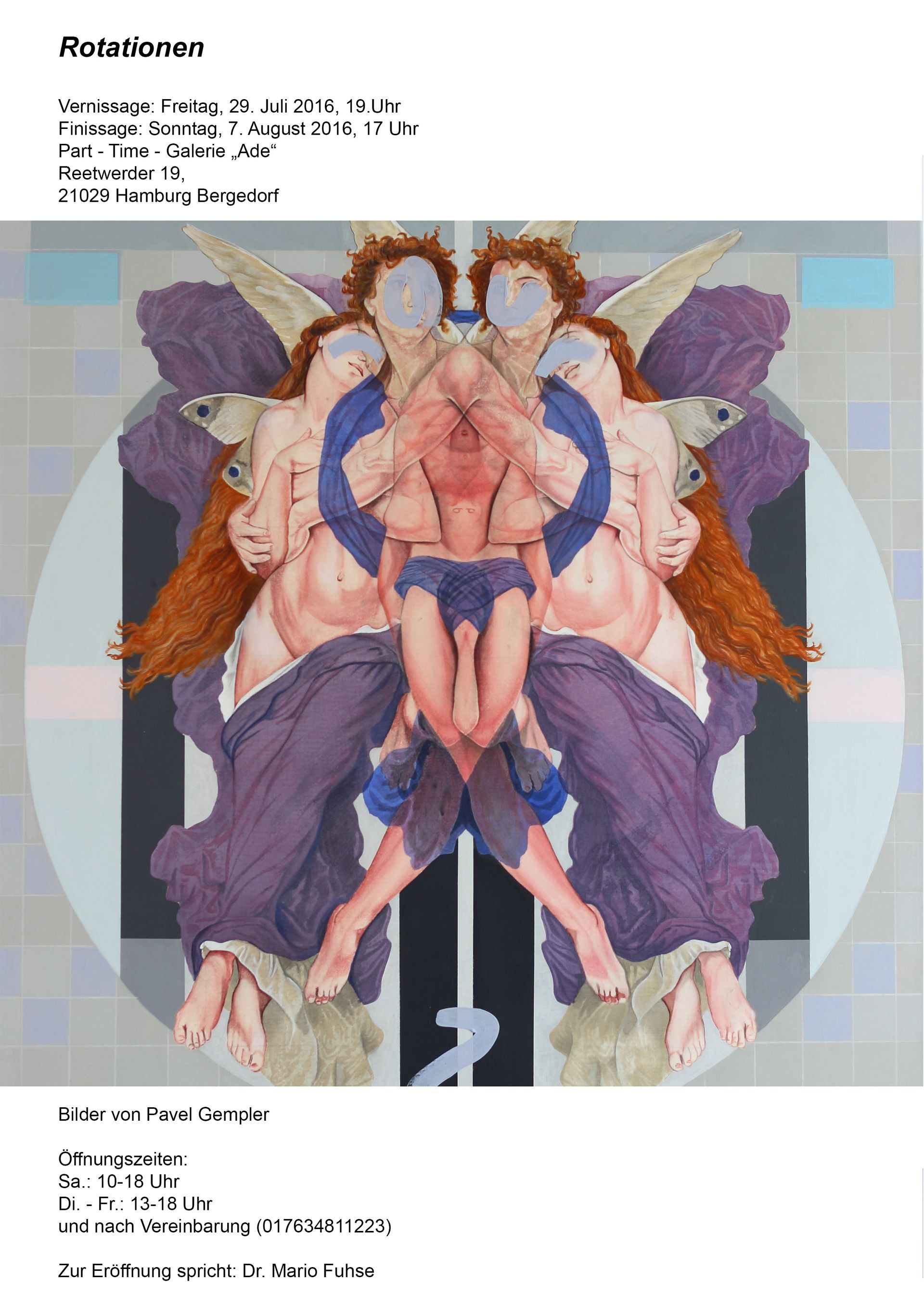 Pavel Gempler begegnet der digitalen Bilderflut mit einer Malerei, die Überlagerung, Verdopplung und Fragment als formale Prinzipien inszeniert. Seine mit transparentem Stoff bespannten und bemalten Leinwände wirken wie entmaterialisierte Screens, auf denen sich menschliche Körper, mythologische Anspielungen und pop-kulturelle Splitter überlagern.